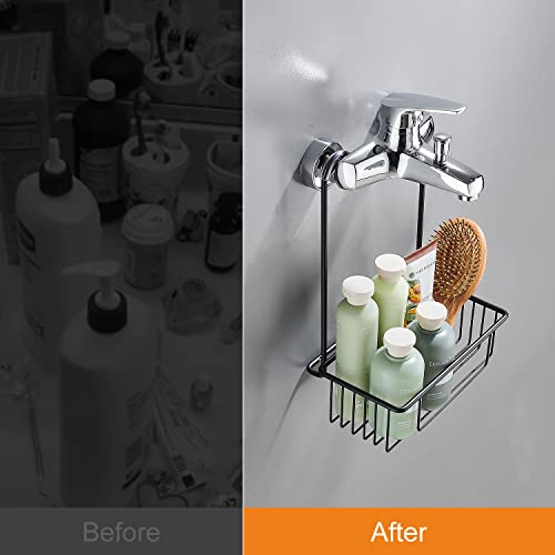 Wopeite Mensola Doccia da Appendere Doccia, Porta Shampoo Doccia Senza forare, Portaoggetti per Doccia appesa al Miscelatore Doccia, Portasapone e Bagnoschiuma Doccia Acciaio Inox, 25x13x35 cm, Nero