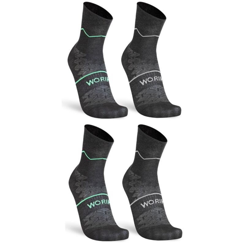 WORIK CALZE FRESCHE TRASPIRANTI COOL THIN SHORT CALZA DA LAVORO 2 PAIA CONFEZIONE 4 CALZE (2 PAIA) MADE IN ITALY TAGLIE DISPONIBILI - 38/42, 43/47 DESCRIZIONE CALZA THIN SHORT-CUT 2 PAIRS TENCEL è una fibra all'eucaliptolo rinfrescante che regola l'assorbimento e il rilascio dell'umidità mantenendo i piedi piacevolmente freschi e asciutti. La tecnologia del bordo e del tessuto a SPESSORE ZERO garantisce vestibilità e comfort pari a una seconda pelle. Cucitura extra-fine e con rimaglio a mano per il massimo comfort. Miscela di microsfere di vetro e materiali tecnici per rendere il tessuto rinfrescante, riflettente, ignifugo, antistatico, antibatterico, antitaglio, fiamma ritardante e antiusura. Struttura differenziata tra arto destro e sinistro su punte e struttura a “Y” sul tallone per garantire prestazioni ottimali. Tecnologia di ‘taglio vivo' (senza cuciture) ed inserti di elastomeri per una sensazione di vestibilità senza precedenti. Trama a nido d'ape ed inserti in trama aperta