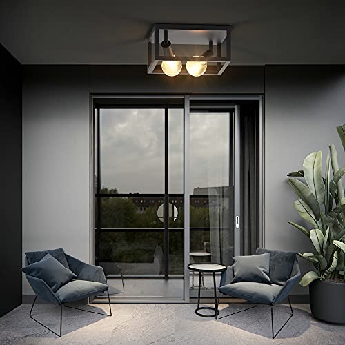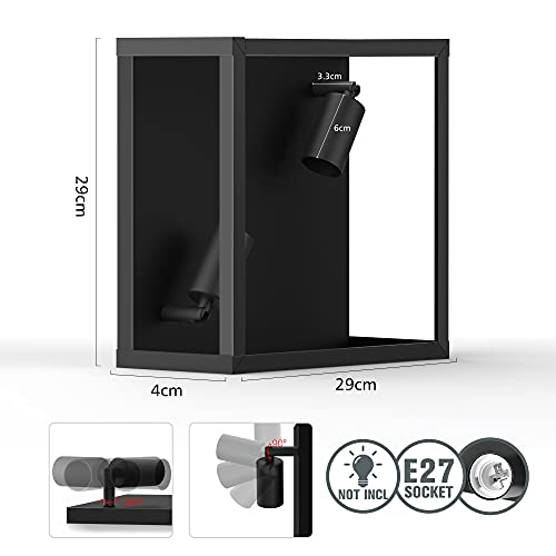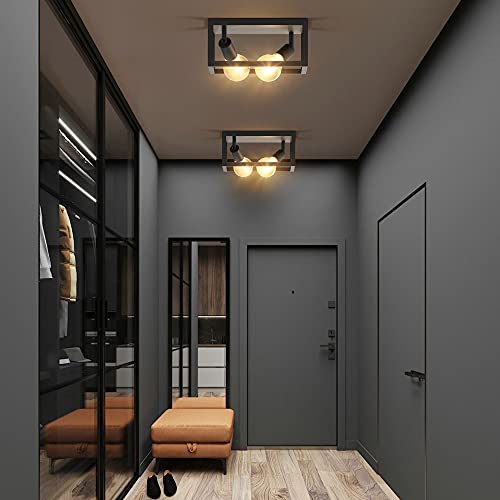 CAR WORK BOX Lampada da Soffitto Vintage Industriale, 2 Portalampade E27, Lampadina non Inclusa, Applique in Metallo, Nero