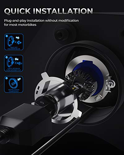 SISTEMA DI RAFFREDDAMENTO -- Con ventila di raffreddamento ad alta velocità 1000RPM per garantire una dissipazione del calore più rapida, un intervallo di temperatura sicuro e una maggiore durata di vita. AVVISO AVVISO: poiché la ventola è progettata sulla parte superiore, si prega di controllare la dimensione della lampadina e l'assemblaggio dei fari per assicurarsi che possa avere abbastanza spazio per installare questa lampadina moto led h4