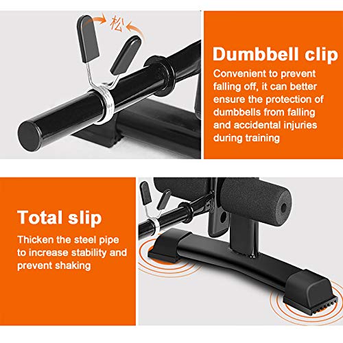 Adjustable Design:The Bench Has An Adjustable Back Pad And Arm Curl Pad To Accommodate Incline,Decline,And Flat Chest Press Exercises.You Can Also Adjust The Height Of The Barbell Crutches For Easier Access.The Backrest Can Be Set To Different Drop Levels,Which Allows You To Exercise On Different Muscle Groups Per Inch.