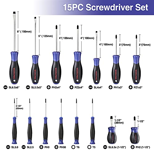 【Goditi il tuo lavoro】WORKPRO set di cacciaviti è realizzato in acciaio Cr-V e la superficie è cromata, il che migliora notevolmente la durezza e la durata del cacciavite e prolunga efficacemente la durata. L'impugnatura in PP+TPR ha una curva morbida, per una presa comoda. Il design compatto, il peso leggero, le dimensioni ridotte, la scatola di plastica rendono più comodo lo stoccaggio e il trasporto
