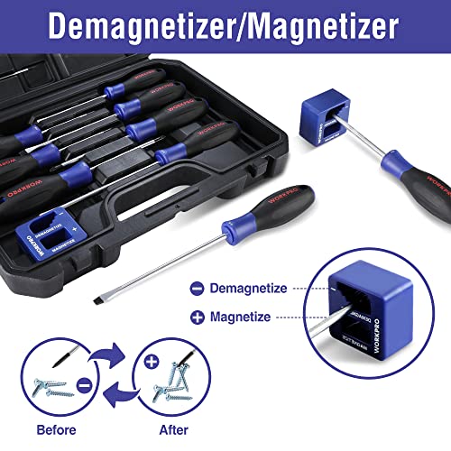WORKPRO Set di Cacciaviti Magnetici 16 Pezzi, Include Cacciavite di Precisione, con Smagnetizzatore/Magnetizzatore e Scatola di Plastica Portatile