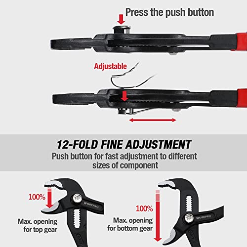 WORKPRO Set di Pinze Regolabili per Tubi e Dadi 2 Pezzi, Pinza a Pappagallo 180mm e 250mm, Regolazione Rapida, con Comoda Impugnatura