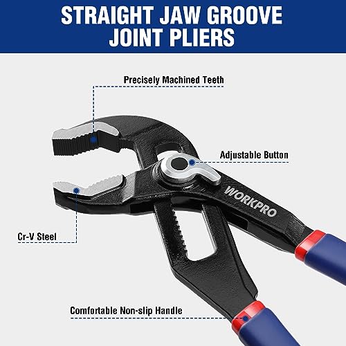WORKPRO Pinze Regolabili per Tubi e Dadi 2 Pezzi, Pinze Chiavi a Pappagallo con Impugnatura Ergonomica a Regolazione Fine, 200mm e 250mm