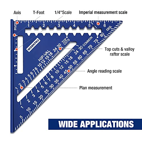 【Funzione multipla】La squadra fai-da-te di WORKPRO è adatta per misurare, marcare, ecc. È ampiamente utilizzato in casa, nella misurazione ingegneristica, nella costruzione di abitazioni