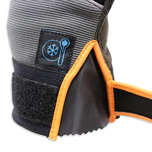 Maggiore visibilità grazie ai riflettori sulla protezione della caviglia. Chiusura in velcro regolabile, parte superiore del pollice in spugna arancione per pulire la fronte.