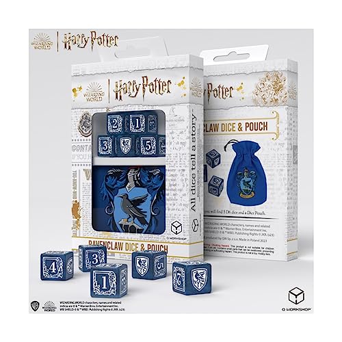 Q Workshop Harry Potter - Set di dadi e sacchetto, motivo: Corvonero, 5 pezzi
