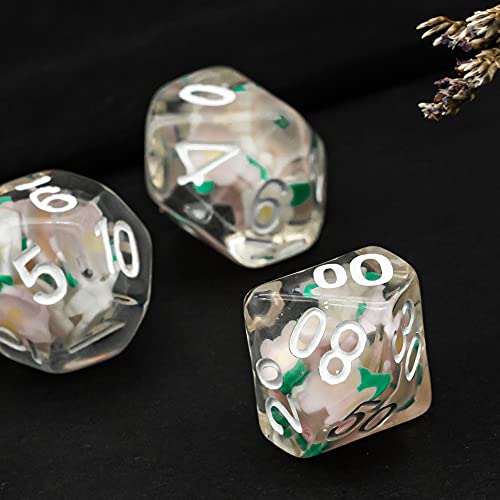 World of Dice - Set di dadi per bouquet di fiori - penna e carta poliedrica in set, con fiori e fiori, bianco