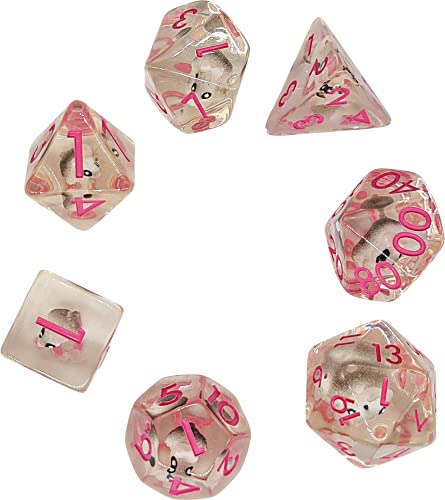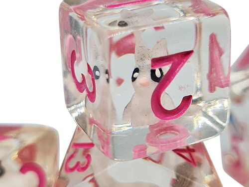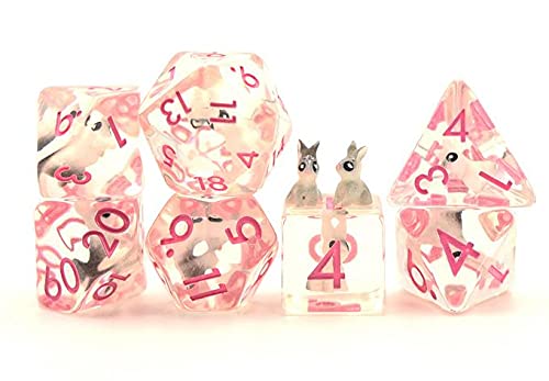 World of Dice - Rabbit Edition - Set di dadi per giochi di ruolo, 7 pezzi, in plastica, rosa