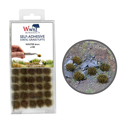 War World Scenics 100 x Ciuffi di Erba Statica Autoadesivi - Inverno, 6mm - Modellismo Statico Ferroviario Wargame Erbetta Sintetica Diorama Spedizione Tracciata