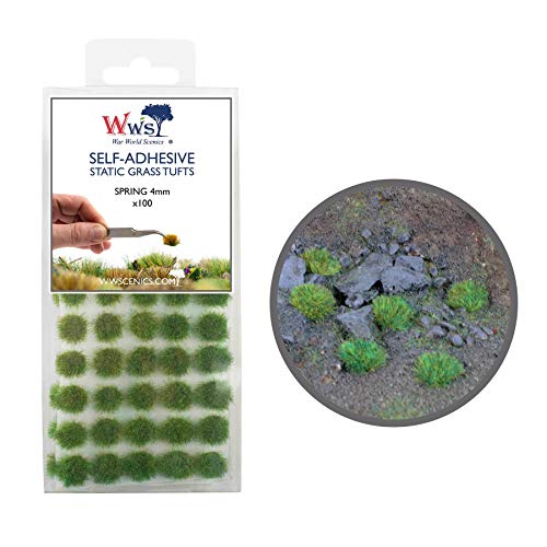 War World Scenics 100 x Ciuffi di Erba Statica Autoadesivi - Primavera, 4mm - Modellismo Statico Ferroviario Wargame Erbetta Sintetica Diorama Spedizione Tracciata