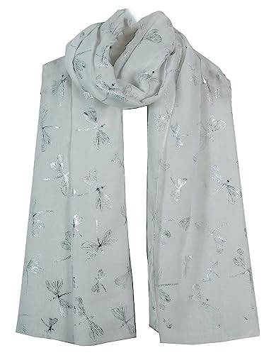World of Shawls, grande sciarpa da donna con glitter e libellule, avvolgente, scialle morbido Silver Taglia unica