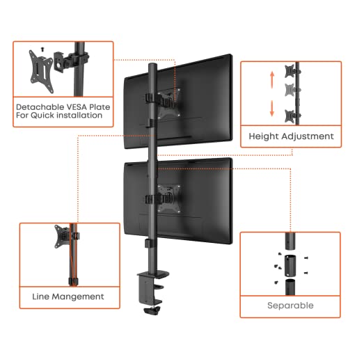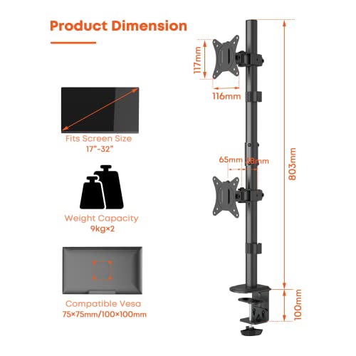 WORLDLIFT Il Supporto per Doppio Monitor Verticale per Schermo LED LCD da 17a 32 Pollici, Supporto VESA 75/100 mm, 2 Opzioni di Montaggio, Peso 9 kg
