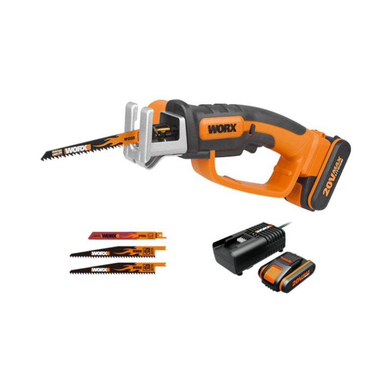 Seghetto batteria 20v-li con 3 lame sega a gattuccio a batteria 20v worx con batteria 20v power share e caricabatterie inclusi, 3 lame in dotazione. la sega a gattuccio è un attrezzo semplice da utilizzare con il quale tagliare legno, piccoli rami, tubi in plastica e anche ferro.la potente batteria da 20 v 2,0 ah power share assicura un'ampia autonomia, potrà essere utilizzata per tutti gli attrezzi worx della linea power share.il seghetto worx wg894e viene fornito con una batteria da 20v 2,0 ah, un caricabatterie rapido, 2 lame per legno e 1 per ferro. alimentazione: batteria 20v power share inclusa. caricabatterie: rapido lame 2 per legno e 1 per metallo corse a vuoto 2200/ min corsa lama 16 mm