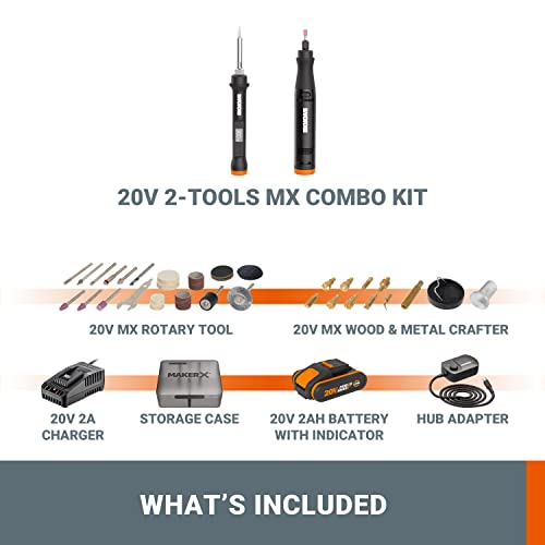 WORX 18V(20V MAX) Strumento Multifunzione MakerX 2-Tool Combo Kit WX988, Utensile Rotante + Saldatore a Stagno, PowerShare, 1 Batteria da 2Ah con Indicatore, 1 Caricatore da 2Ah