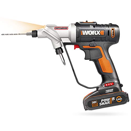 Worx W176.3 Trapano Avvitatore Switchdriver con Mandrino Rotante, con 2 Batterie 20V