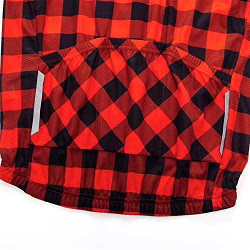 WOSAWE - Maglia da ciclismo a maniche corte da uomo con stampa a quadri - rosso - XL (petto 110.5/116.8 cm)