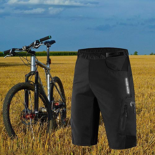 WOSAWE Pantaloncini MTB Uomo, Leggeri Bicicletta Loose-Fit Shorts Traspirante 3D Gel Imbottito Biancheria Intima da Ciclismo (Nero L)