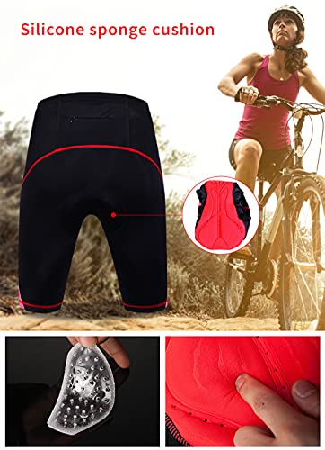 WOSAWE Pantaloni da ciclismo da donna a compressione 4D, imbottitura in gel per ciclismo, MTB, biancheria intima (rosso, L)