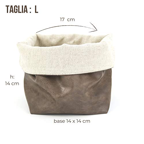 Wosde Cestino Vintage Porta Pane Porta Oggetti Pelle e Tessuto per Cucina Bagno Tavolo e scrivania (Terra, L)