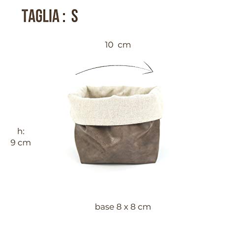 Wosde Cestino Vintage Porta Pane Porta Oggetti Pelle e Tessuto per Cucina Bagno Tavolo e scrivania (Terra, S)