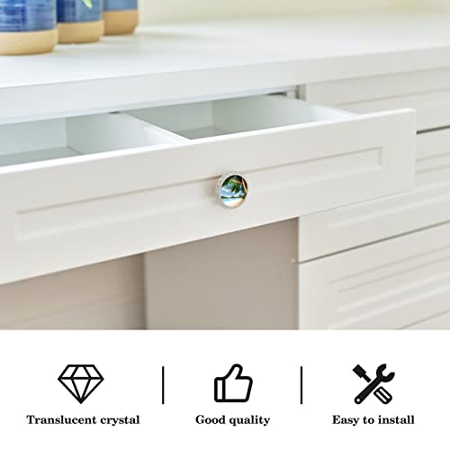 WOSHJIUK Manopole trasparenti per armadietti in vetro cristallo,confezione da 4,Palme della spiaggia del paesaggio delle Hawaii,Ferramenta per armadio con pomello per cassetto