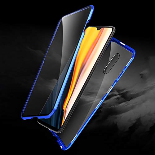 Woskko Custodia magnetica compatibile Oneplus 7, custodia magnetica in vetro temperato 9H frontale e posteriore, Blu