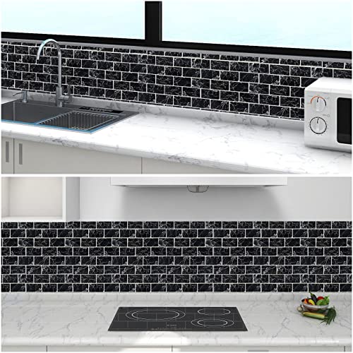WoStick 10-Foglie Paraschizzi Piastrelle, Spessore Aggiornato di 2,5 mm, Mattonelle Adesive Cucina Nero (30.5 x 30.5cm)