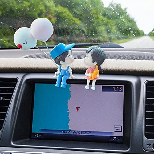 WOTEG Coppia di statuette ornamentali per interni dell'auto, simpatici coppia di decorazioni per interni dell'auto, Kiss Boy and Girl, accessori per cruscotto per donne e ragazze