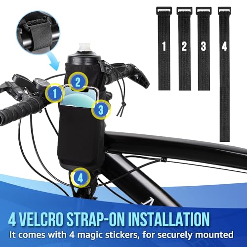 Attacco a 4 punti più stabile - Non sono necessarie viti extra, ci sono 4 cinghie di fissaggio intorno alla borsa da manubrio della bici, senza fori di cui ha bisogno un tipico portaborraccia. Le cinghie di fissaggio sono regolabili per adattarsi al manubrio della bicicletta. Il passante per 2 cinghie di fissaggio collega la borsa dello stelo al manubrio e altri 2 anelli si attaccano allo stelo. Sarà saldamente e sicuro nella parte anteriore durante il ciclismo.