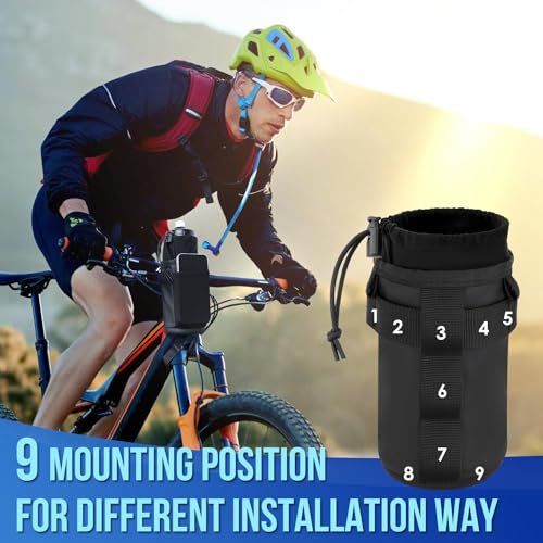 Apertura rapida e facile accesso - Questa borsa da bici è adatta per bottiglie fino a 8,99 cm di diametro. La chiusura superiore con coulisse può essere aperta / chiusa rapidamente, ti consente di accedere rapidamente alla tua bottiglia d'acqua, snack ecc. Inoltre, la tasca laterale della borsa è 12 * 8,5 cm (4,7 * 3,35 pollici) perfetta per contenere barre di energia, spazzatura, telefoni come Apple 4, 5, 6,6S, piccoli strumenti, ecc.