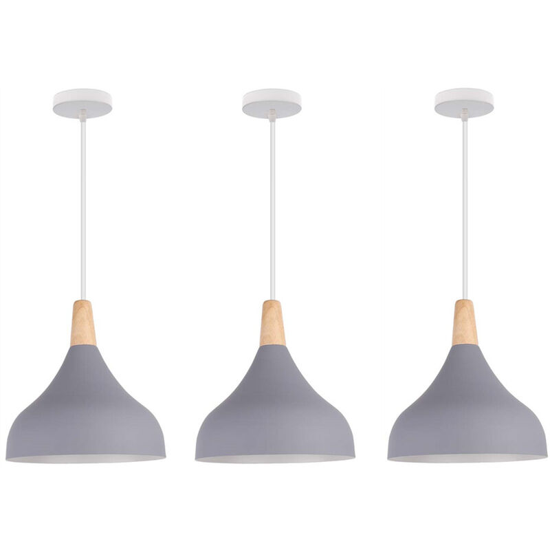 Materiale: Paralume in metallo verniciato ad alta temperatura, anticorrosione e antiruggine, la decorazione creativa del portacandele in legno massello è più personalizzata, vernice ecologica, colore uniforme e bello. Design: L'aspetto è semplice e generoso e il design semplice aggiunge un punto luminoso. Con vari stili, è un'ottima decorazione. Si applica a: È un'opzione ideale per decorare soggiorno, cucina, corridoio, sala da pranzo, caffetteria. Generale: Qualsiasi lampadina Edison o lampadina a incandescenza e lampadina LED con attacco E26 (massimo 60 watt). Nota: Non include le lampadine. La lampada stessa non è dimmerabile, ma può essere utilizzata con lampadine dimmerabili. Informazioni sul prodotto: Diametro della base: 10cm Dimensioni del paralume: 20cm * 20cm Lunghezza cavo: 100cm (regolabile) Colore: Grigio. 3 × lampadario