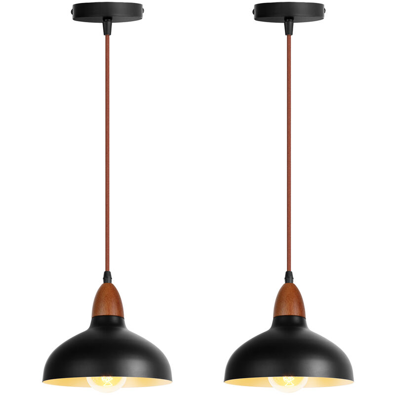 Anticorrosivo e durevole: I 2 lampadari sono realizzati in metallo di alta qualità, robusto e durevole. La superficie è sabbiata e verniciata per prevenire corrosione e ruggine. Luce piacevole: Dotato di attacco E27, potenza massima 60W (lampadina non inclusa). L'interno del paralume è bianco e la luce è morbida e confortevole. Altezza regolabile: Il diametro massimo del paralume è di 35 cm. Il diametro della base del soffitto è di 12 cm. Grazie ad un cavo lungo 150 cm potrete regolare l'altezza del lampadario in base alle vostre esigenze. Corrispondenza perfetta: La perfetta combinazione di metallo e legno, design semplice e moderno. Perfetto per arredare camere da letto, cucine, bar, ristoranti e altro ancora.