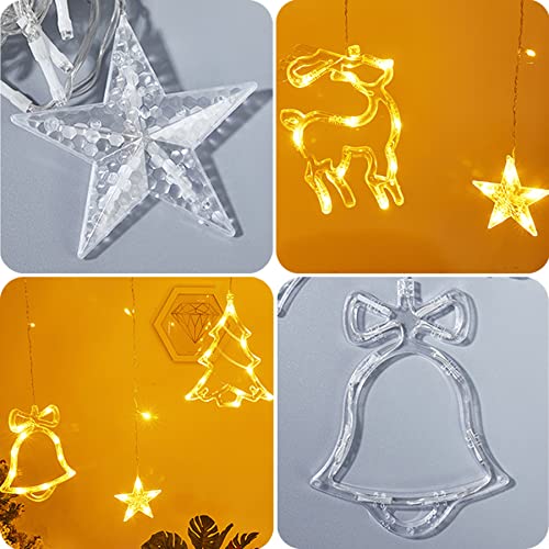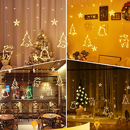 Woukksy LED Luci di Natale da Interno e Esterno, 3.5M Luci Tenda a Batteria/USB con Stella, Renne, Albero di Natale, Campane, Bianco Caldo Catena Luminosa con Telecomando per Decorazioni Natalizie