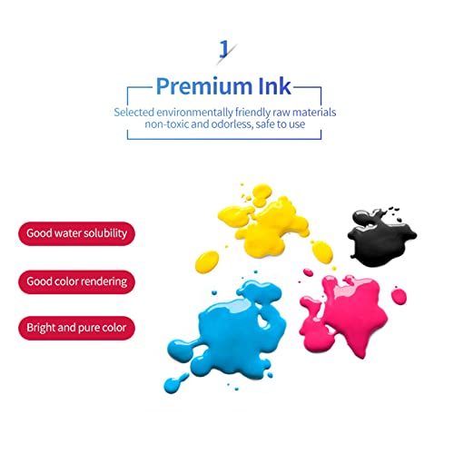 Contenuto della confezione: confezione multipla da 104 inchiostri, 4 flaconi (1x nero, 1x ciano, 1x magenta, 1x giallo), ottimo rapporto qualità-prezzo e conveniente. Volume d'inchiostro: nero/ciano/magenta/giallo 100 ML per bottiglia d'inchiostro.