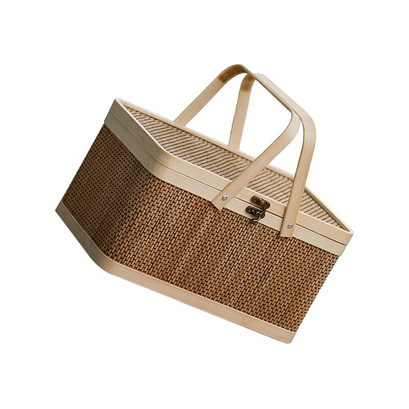 Description Natural Woven Picnic Basket Wicker Bread Basket Gift Fruit Storage Basket Picnic Basket Wicker Hamper For Outdoor Picnic Camping Features- Color: As Shown;