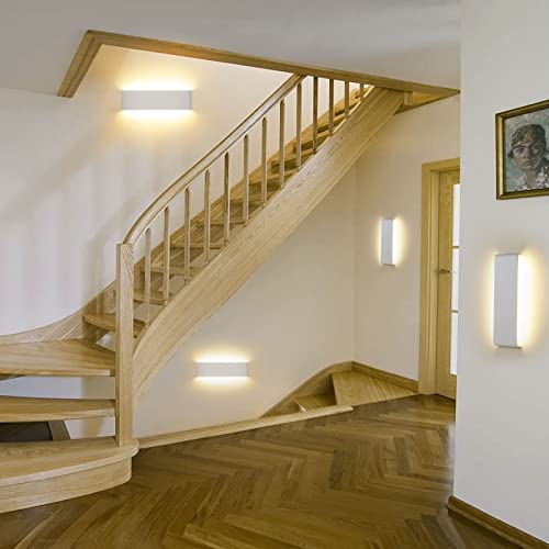 Wowatt 2 Pezzi Applique da Parete Interno LED Moderno Applique Camera da Letto Scale Bianco Caldo 2800K 12W 220V Lampada da Parete 30CM Alluminio Lampada da Muro per Bambini Corridoio Soggiorno