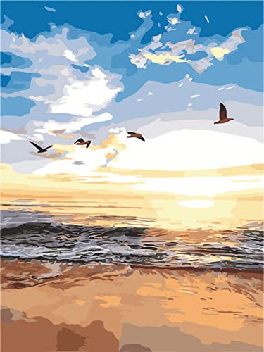 WOWDECOR DIY Dipingere con i Numeri per Adulti Ragazze Ragazze, Tramonto Wave Nave 40 x 50 cm prestampato Tela Dipinto a Olio, Meer, Senza Telaio