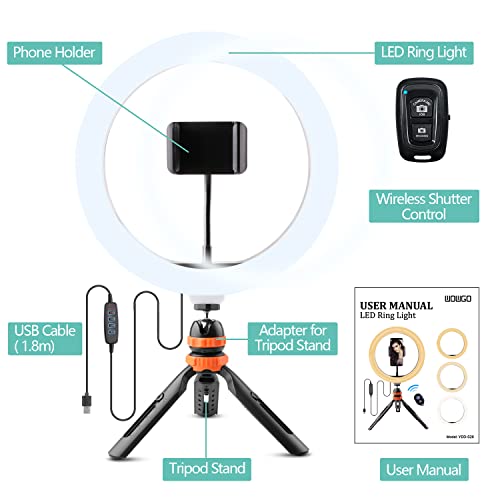 WOWGO Luce ad Anello, 10'' LED Selfie Ring Light con Treppiedi, Telecomando Wireless, 3 Modalità di Colore e 11 Livelli di Luminosità per Belle Foto o Tik Tok Video Shooting, Live Streaming, Makeup