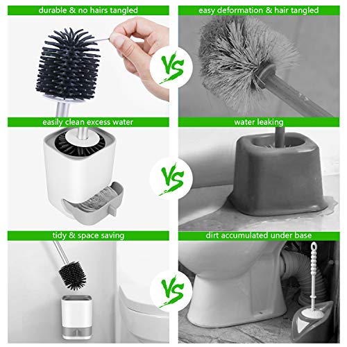 WOWGO Scopino per WC, Scopino e Supporto per Toilette, Spazzole per WC in Silicone e Asciugatura Veloce Portascopino con Pinzetta, Gancio appiccicoso per Servizi Igienici e Bagno