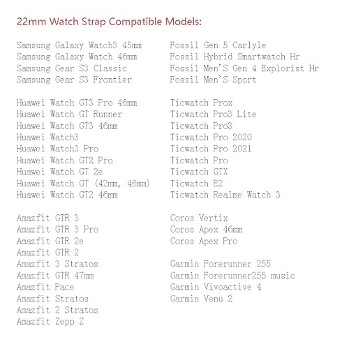 【Ampiamente compatibile】 Sostituzione per Garmin Forerunner 255, compatibile per Garmin Venu 2, compatibile per Garmin Forerunner 745, compatibile per Fossil Gen 5 e altri che utilizzano una larghezza di 22mm. (L'orologio NON è incluso)