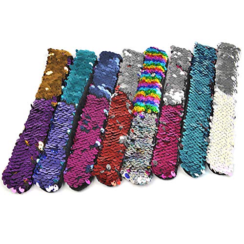 WOWOSS 16 Pezzi Braccialetti Slap Reversibili Glitter, 8 Colori Paillettes Braccialetti a Sirena per Festa, Compleanno e Natale, Bracciali in Paillette