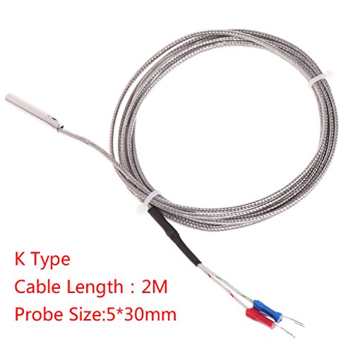 WOWOWO Sensore di Temperatura a termocoppia Tipo K da 2 m 0-600 ℃ Sonda 5 * 30 mm in Acciaio Inossidabile