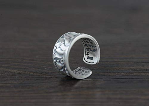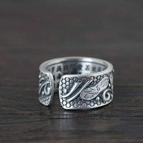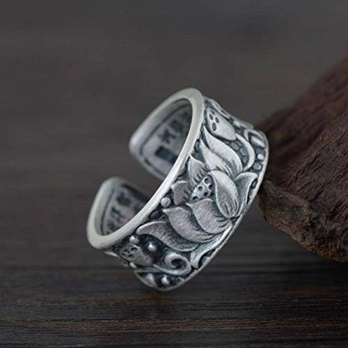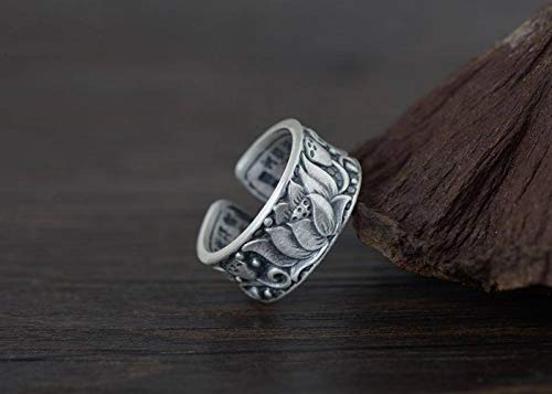 WOZUIMEI Anello Stile Cinese Gioielli Anello in Argento Puro Antico Antico Dito Indice Tailandese Anello Moda Femminile Anemone Stile Cinese Anello Delle ScrittureOpaco