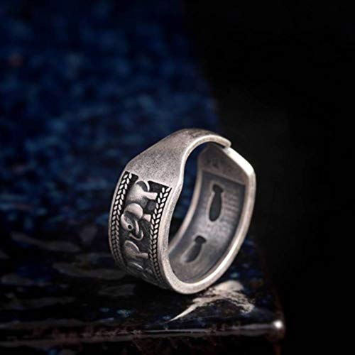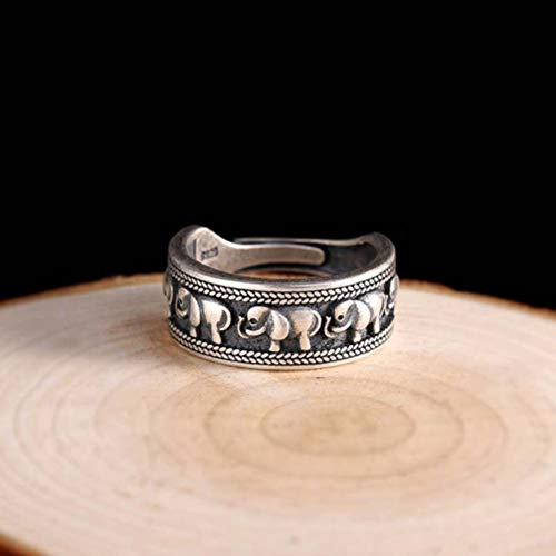 WOZUIMEI Anello Stile Cinese Gioielli Fatti a Mano in Argento Tailandese Anello in Argento Sterling S925 Gioielli Regolabili Anello Elefante Piccolo da Donna RuyiAnello dell'elefante