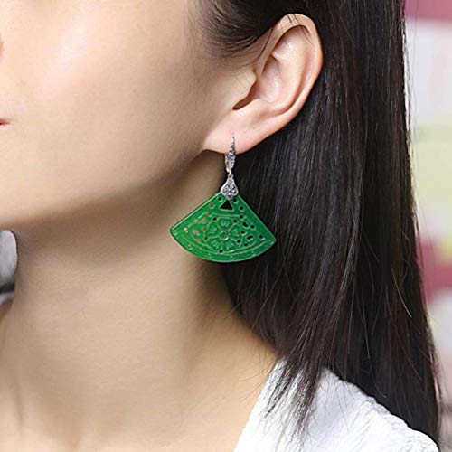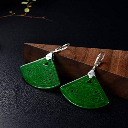 WOZUIMEI Orecchini Eardrop Orecchini a Forma Di Ventaglio Di Giada Orecchini Di Fiori Di Prugna in Stile Cinese Orecchini Femminili Di Gioielli in Argento S925 Gioielli in Argento Fatti a Mano Scolpi