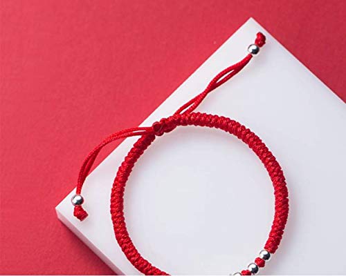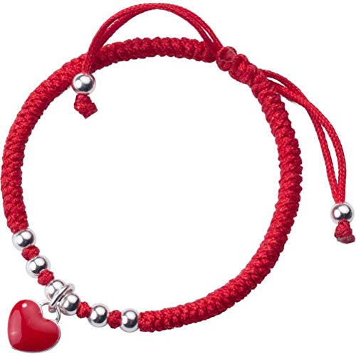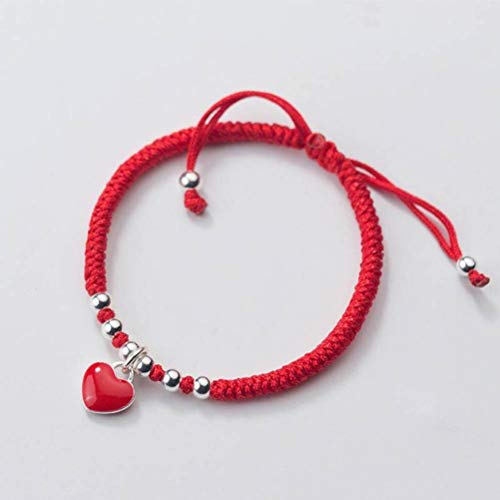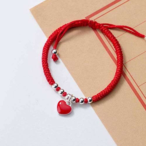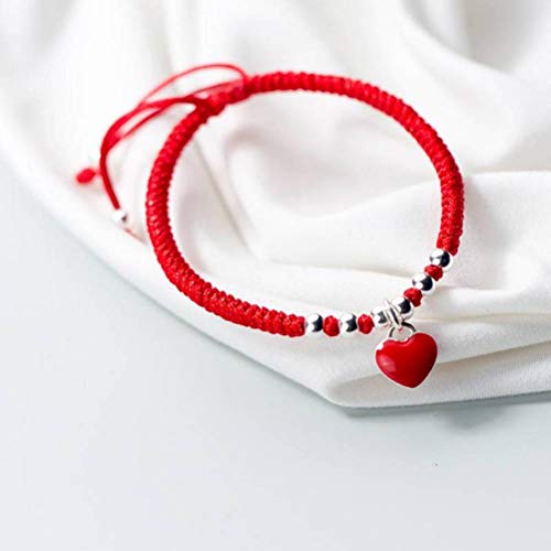 WOZUIMEI S925 Bracciale in Argento Stile Giapponese da Donna Semplice e Dolce Amore Rosso Intrecciato a Mano Rosso Gioielli Gioielli a Mano GioielliBracciale in argento S925
