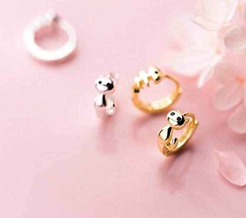 WOZUIMEI S925 Orecchini in Argento Coreano Asimmetrico Piccolo Pesce Femminile Asimmetrico Orecchie Orecchie Di Gatto Orecchini Fibbia Gioielli Stileargento, Argento 925