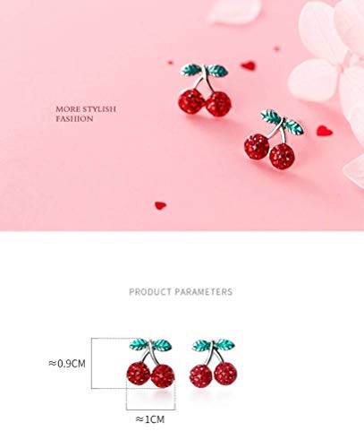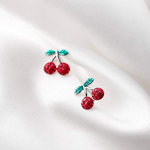 WOZUIMEI S925 Orecchini D'Argento Della Foresta Di Stile Dolce Rosso Ciliegia Orecchini Di Diamanti Personaggi Femminili Adorabili Della Frutta Di Personalità Delle Donneun paio, Argento 925